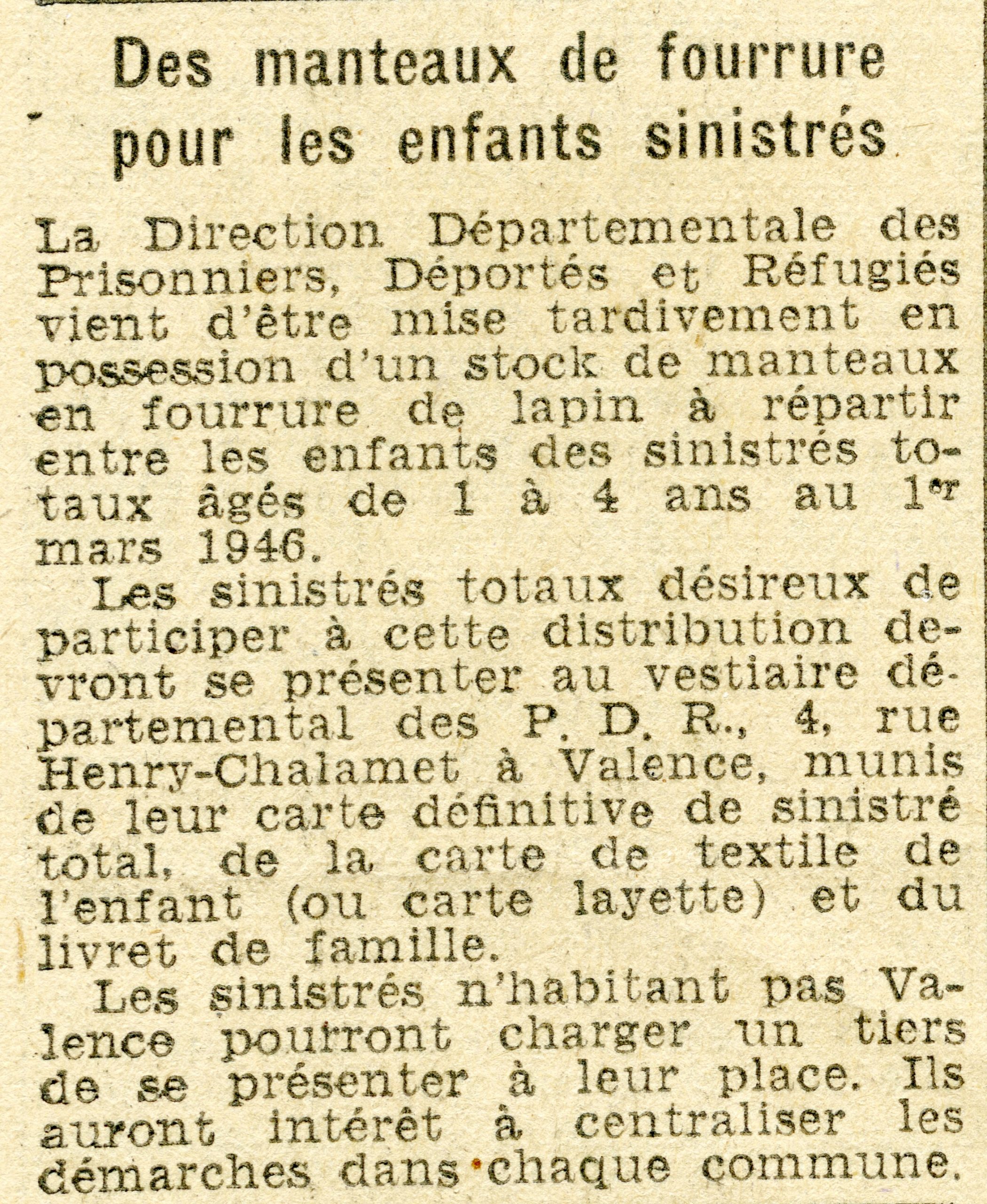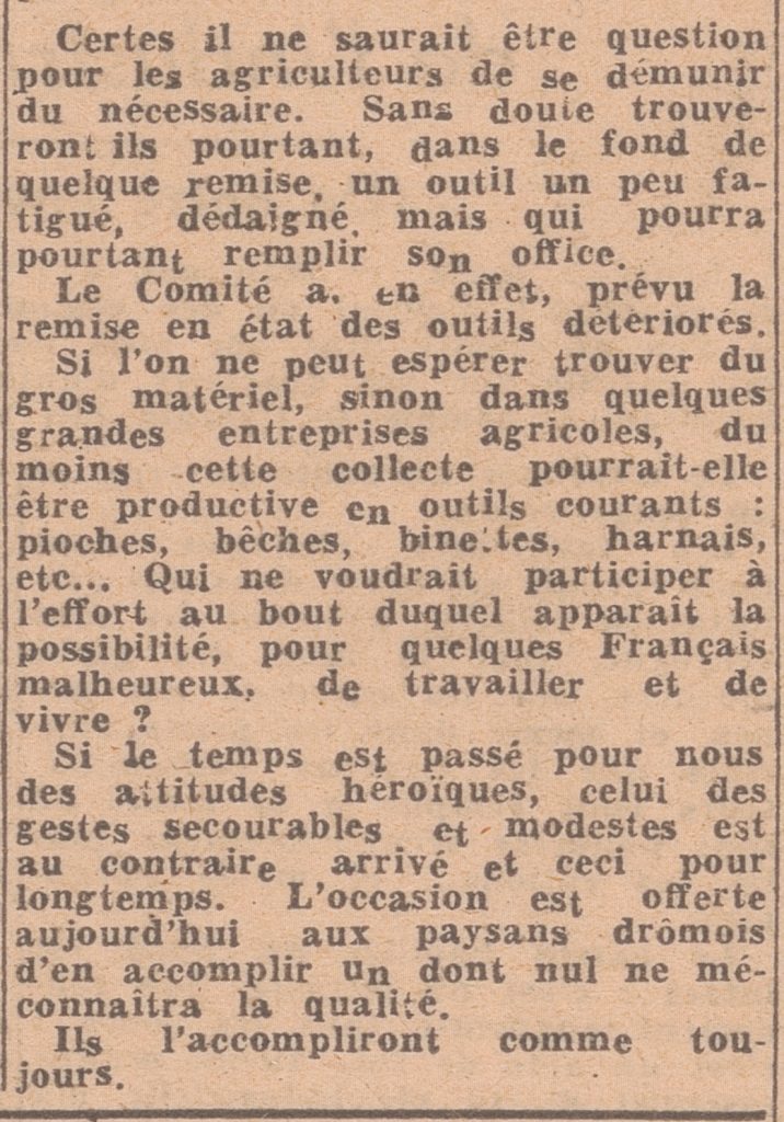Collectes de vêtements, d’argent, d’outils agricoles pour le Vercors, quête aux mariages, galas… sont organisés à leur profit.