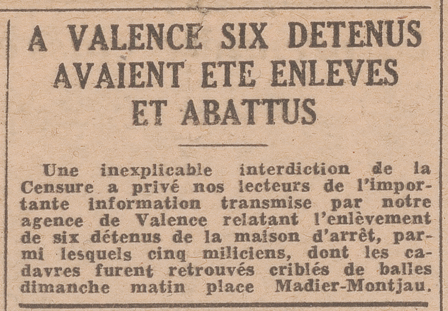 Les évènements survenus et censurés (détenus enlevés et abattus) ne sont relatés que quelques jours plus tard.